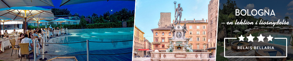 Regionen Emilia-Romagna, der er hjemsted for lækkerier som lambruscoen, parmesanosten og den hvide trøffel, vil lære jer at nyde livet på italiensk maner. Første lektion får I allerede, når I checker ind på det lyse og topmoderne Relais Bellaria i idylliske landomgivelser 8 kilometer fra Bolognas centrum. Her kan I glæde jer til skønne 3-retters middage – serveret udendørs, når vejret er til det – i a la carte-restauranten Corbezzoli, som har en elegant, afslappet atmosfære, og hvor der altid står opmærksom service på menuen. I hotellets have finder I i sommerperioden en lækker solterrasse med egen bar, hvor swimmingpoolens blå vandspejl glitrer under palmer og parasoller – og hvor boblebadene blot venter på selskab. Efter en stund med lukkede øjne og lav hvilepuls i det svalende vand kan I tage på opdagelse i det hyggelige nærområde og stemningsfulde Bologna – eller hvad med at pakke tæpper og solcreme og sætte kurs mod Riminis bløde strand (41 km)?